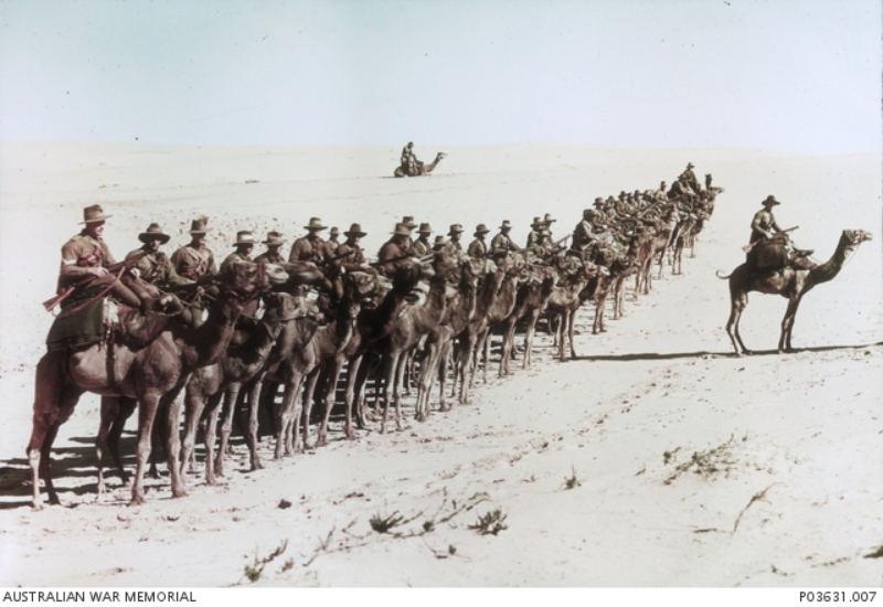When war broke out in August 1914, and aged nearly twenty-seven years old, he enlisted immediately and was posted to the 6th Light Horse eventually serving at Anzac Cove in May 1915. He was wounded in the head in action at Gallipoli in August, but on recovery he returned to duty. He transferred to the 2nd Light Horse in early 1916 and spent the year on active service in the Middle East campaign. He was promoted to 2nd Lieutenant and joined No.2 Company of the 1st Battalion of the Imperial Camel Corps in early April 1917.